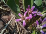 Erect or spreading herb growing from a tuber up to 10 cm in diameter, sub-spherical. Aerial stems 1–few, 2.5–8 cm × ± 2 mm, puberulent to pubescent, branching lateral. Leaves spreading to ascending, sub-sessile to petiolate; petiole 0–10 mm long, sometimes stem-clasping, puberulent to pubescent; blade 3.5–6 × 0.7–2 cm, narrowly obovate to obovate, acute, base tapering, above glabrous or pubescent, spotted, beneath puberulent to pubescent and denser on veins, margin wavy. Inflorescences terminal, open, few-flowered monochasia, puberulent to pubescent, peduncles 2–17 mm long, pedicels 7–18 mm long; bracts 2–4 mm long, subulate. Sepals 2–3 × 1 mm, narrowly triangular to narrowly ovate, attenuate, outside puberulent to pubescent. Corolla tube 3–5 mm long, campanulate, outside glabrous to pubescent, inside glabrous; lobes spreading, 12–20 × 3–5 mm, oblong-ovate, obtuse to sub-acute, outside glabrous to pubescent, inside mauve. Coronal feet fleshy; lobes from outer apex of coronal feet, 7–20 mm long, base dilated becoming filiform, papillose or glabrous, apex tortuous. Follicles and seeds unknown.